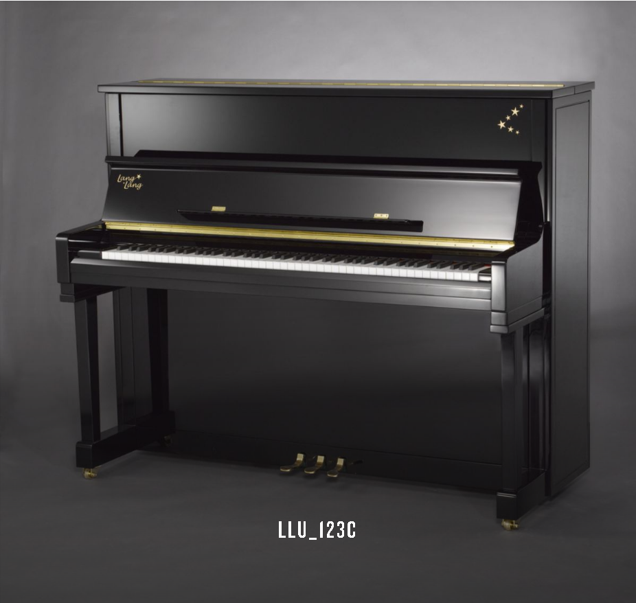 飾面采用黑檀木拋光制作而成的LLU-123C郎朗系列立式鋼琴的特別之處在于優(yōu)美的鋼琴琴體線條設(shè)計和皇室風(fēng)格的直角設(shè)計,以及與之相匹配的琴飾、琴腿和后折疊頂蓋。