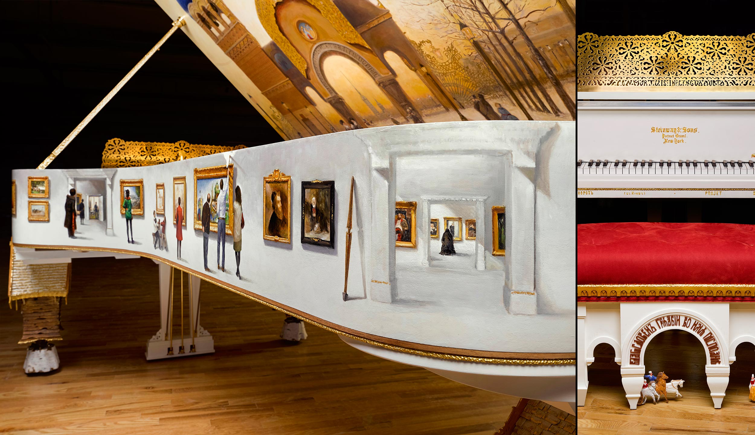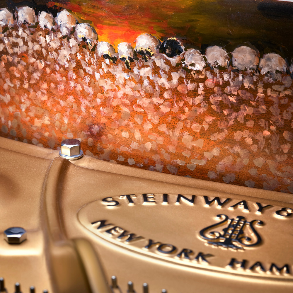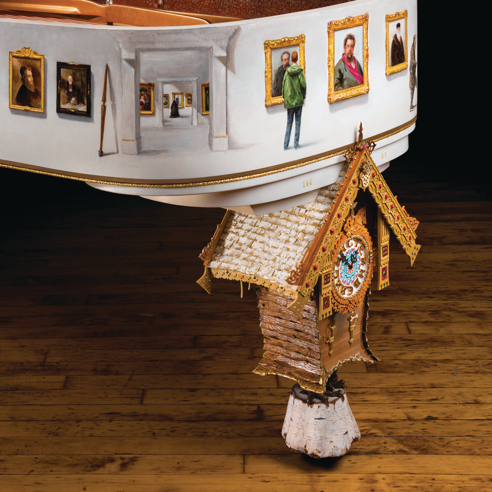 在保羅的構(gòu)思和創(chuàng)作下,這架施坦威D型號(hào)三角鋼琴生動(dòng)地再現(xiàn)出1874年由穆索爾斯基創(chuàng)作的、層次豐富且錯(cuò)綜交織的鋼琴組曲《圖畫(huà)展覽會(huì)》,造就了這架集視覺(jué)藝術(shù)、俄羅斯歷史與與精湛手工藝的驚人杰作。保羅精心設(shè)計(jì)了每一個(gè)細(xì)節(jié),令人駐足觀賞,流連忘返,贊不絕口。